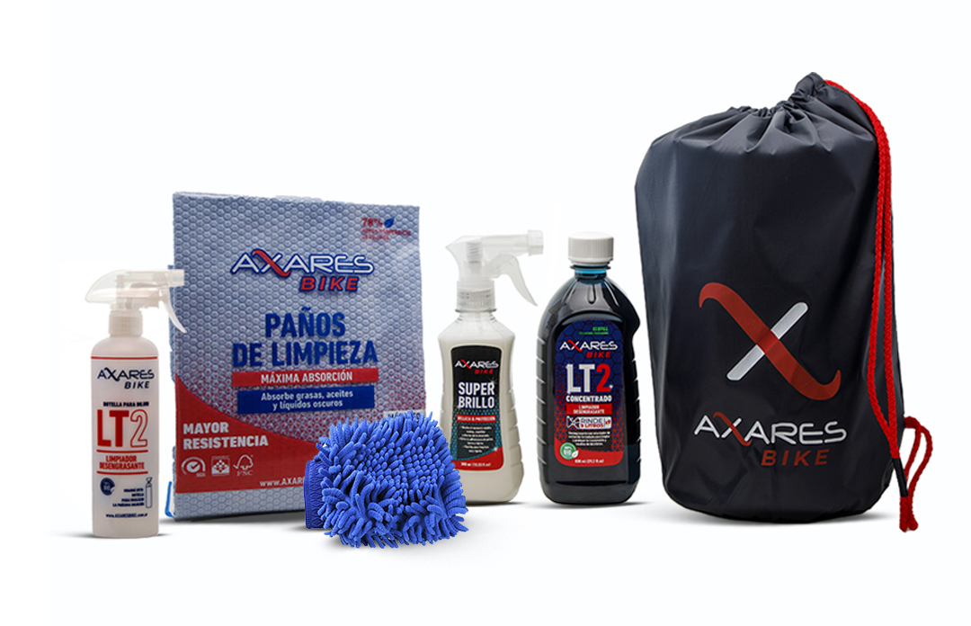 Los kits de AXARES BIKE son combinaciones de productos diseñadas para el mantenimiento, limpieza y protección de tu bicicleta. Están pensados para brindarte una solución completa en un solo paquete, facilitando el cuidado de tu bici de manera eficiente y profesional.
